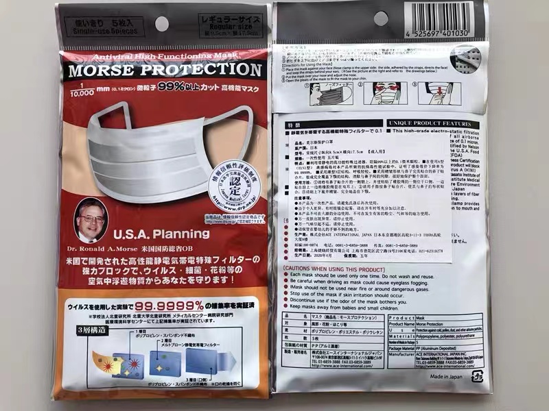 成人款與兒童款莫爾斯保護(hù)口罩(日本ACE株式會社)